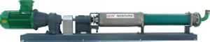單螺桿泵是為離心機供漿的理想設(shè)備,不用剪切和攪拌泥漿。主要部件有螺桿軸(轉(zhuǎn)子),螺桿套管(定子)。由于兩部分獨特的幾何形狀,它們分別產(chǎn)生擠壓量。廢漿隨軸流動,內(nèi)部流速低,保持容量,壓力穩(wěn)定,這樣不會產(chǎn)生渦旋和攪拌。泵的螺桿由不銹鋼制成,GN全不銹鋼機身螺桿泵可選。螺桿泵能夠用耦合器,或通過變速電機調(diào)節(jié)速度,三角V形帶,齒輪箱等驅(qū)動。G系列螺桿泵附件少,兼容的結(jié)構(gòu),小體積,易保養(yǎng),轉(zhuǎn)子和定子是泵的易損件,方便替換。定子由人造橡膠材質(zhì)制成,在轉(zhuǎn)送高黏度和硬的懸浮物的廢漿方面比其他的泵有特殊的優(yōu)勢。