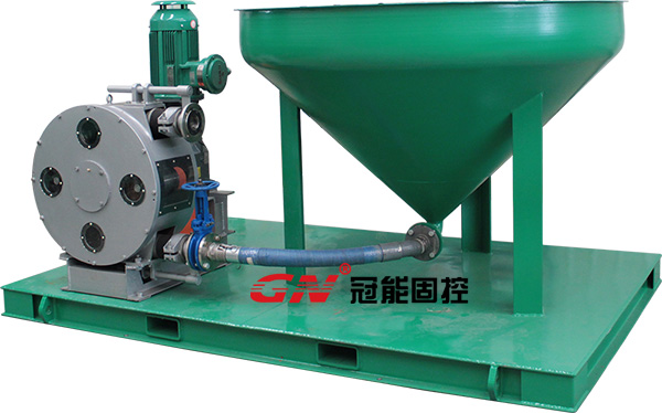 鉆屑輸送裝置由錐形鉆屑接收漏斗和鉆屑輸送泵以及控制裝置構(gòu)成,能夠接收固控設(shè)備用螺旋輸送機(jī)輸送過來的鉆屑和鉆井廢棄物。鉆屑輸送泵由電機(jī)驅(qū)動(dòng),通過真空作用吸取鉆屑,輸送給鉆屑干燥篩或者鉆屑甩干機(jī)處理。鉆屑輸送泵具備較強(qiáng)的自吸能力,專門用于輸送高粘度高固含量耐磨耐酸耐腐介質(zhì),且無密封結(jié)構(gòu)輸出壓力高。
