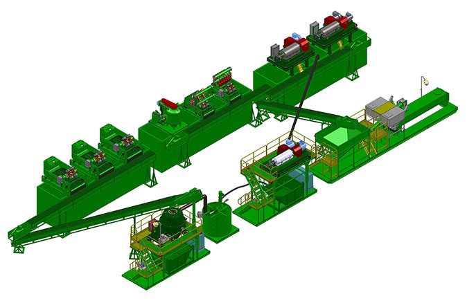冠能模塊化廢漿處理系統(tǒng)是將不同功能的設(shè)備制作成獨(dú)立的小模塊,包括鉆屑輸送裝置、干燥篩裝置、泥漿中轉(zhuǎn)裝置、甩干機(jī)支架模塊、撬裝離心機(jī)模塊和標(biāo)準(zhǔn)巖屑盒。