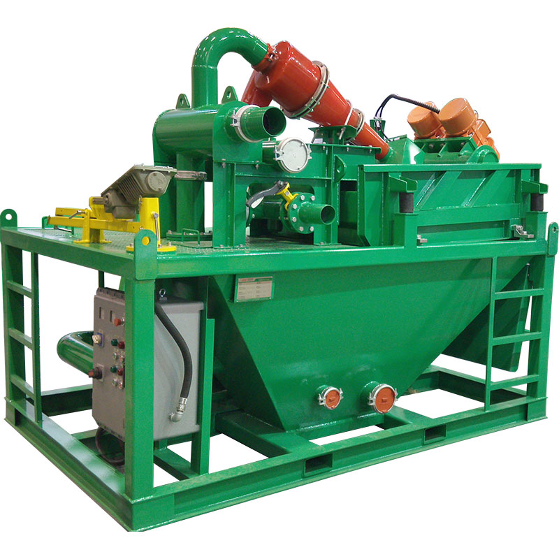 2. 一級分離設(shè)備:雙層振動篩。擁有上下兩層篩網(wǎng)的鉆井液振動篩:一層粗篩網(wǎng)可以將粗顆粒進行分離,第二層細篩網(wǎng)可以將泥漿中更為細小的顆粒進行篩除。剩下的泥漿進入臥螺式沉降離心機進行進一步凈化分離。