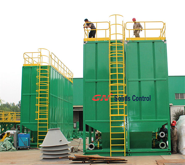 1)8套特殊定制的垂直泥漿罐作為儲漿罐,尺寸2200x2200x5800mm,8套泥漿罐可以裝入4具40英尺的集裝箱,總重量不超過5噸,滿足了直升機(jī)的吊裝要求。