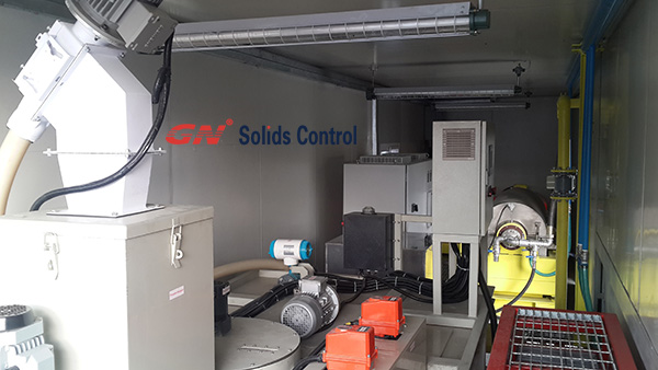 一套包含一臺(tái)大轉(zhuǎn)鼓泥漿離心機(jī)的絮凝加藥系統(tǒng),安裝在40尺的集裝箱內(nèi)